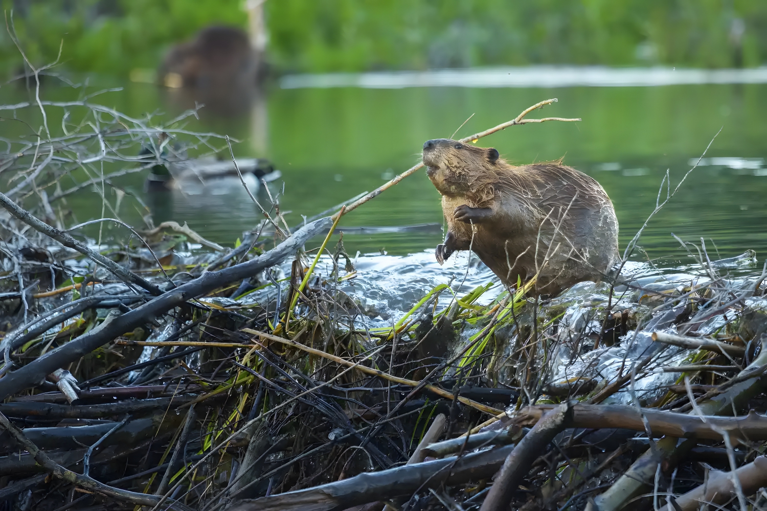 One of the most famous tool users is the beaver, despite the fact that tool use among rodents is extremely rare. These animals construct dams to protect themselves from predators and to provide easy access to food and gentle swimming, with some dams growing to as long as 2,790 feet. Beavers build dams by cutting down trees and packing them with mud and stones.