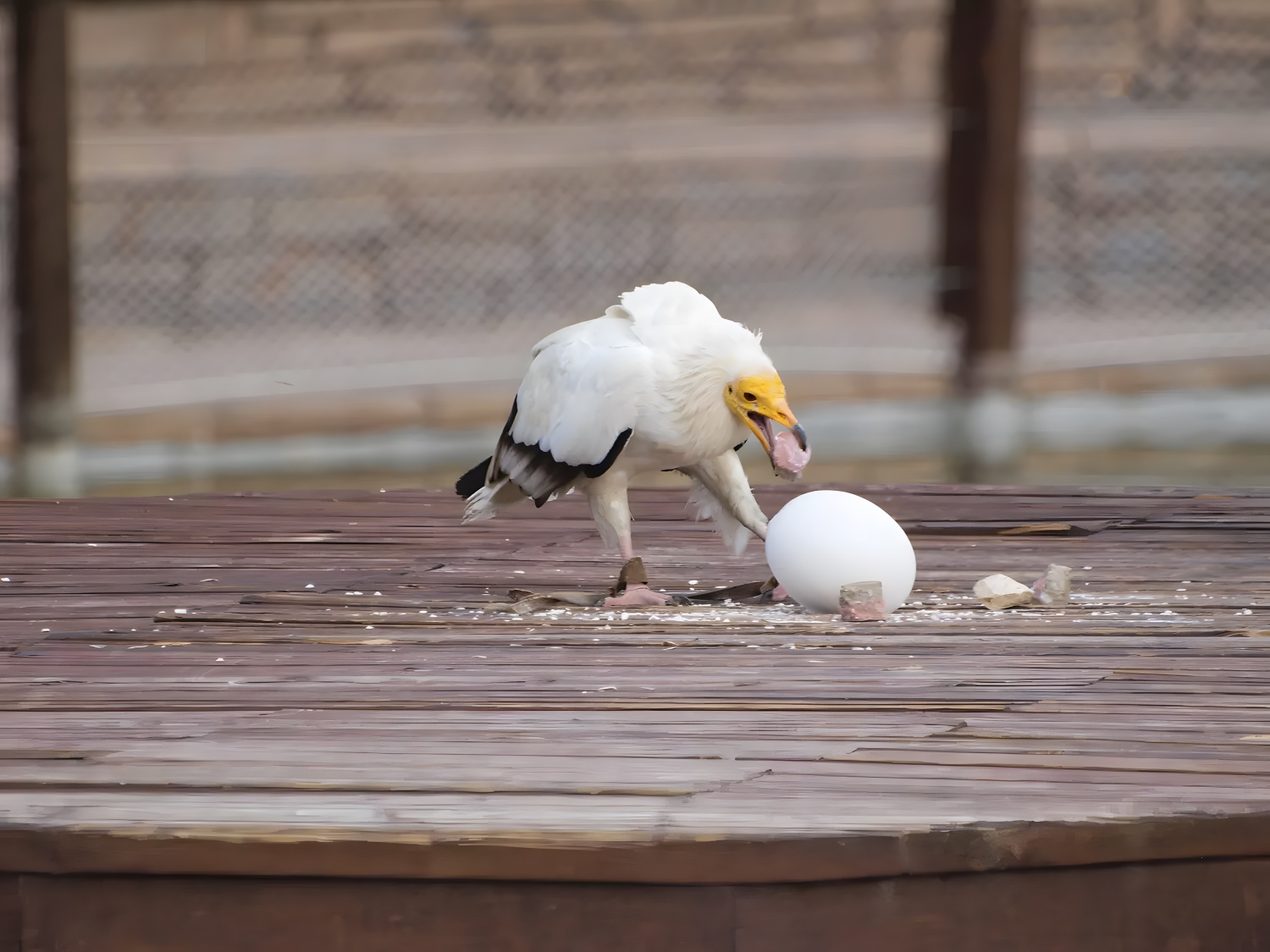 Birds are among the most prolific tool users, and one of the most startling examples is the Egyptian vulture. One of the vulture’s favorite foods is an ostrich egg, but the giant eggshell can be difficult to break. To compensate, the vulture manipulates rocks with its beak and pounds the rocks into the shell until it cracks. They have also been observed using sticks to roll up wool, which is then used as a lining in their nests.