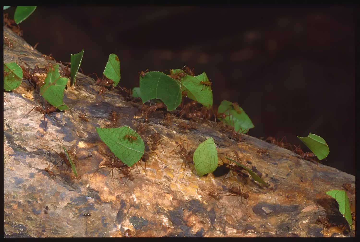 Insects also use tools, especially social insects such as ants. Leafcutter ants have even created an advanced agricultural society in which they cultivate fungus to use as a food source for their larvae. The ants cut pieces from leaves and other vegetation such as grasses, which are then brought to the fungus to be used as a nutritional substrate. The ants also carry waste away from their fungal gardens and deposit it in a refuse dump. Sometimes they use tools to transport liquid to their nests and will test new materials to gauge their effectiveness at soaking up liquid.