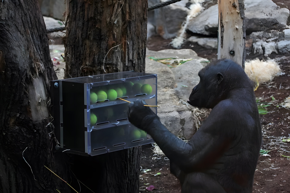 There are endless instances of tool use among primates. Chimpanzees fashion twigs for termite fishing, use stone and wooden tools to crack open nuts, and sharpen spears out of sticks to hunt. Meanwhile, gorillas use walking poles to measure water depth, orangutans can pick a lock with a paperclip, and capuchins make stone knives by banging flint against the floor until the pieces are sharp. Primate tool use has also been studied by scientists for centuries. Charles Darwin discussed tool use among baboons in his 1871 book “The Descent of Man,” and Jane Goodall famously studied chimpanzees and their use of tools in the 1960s.