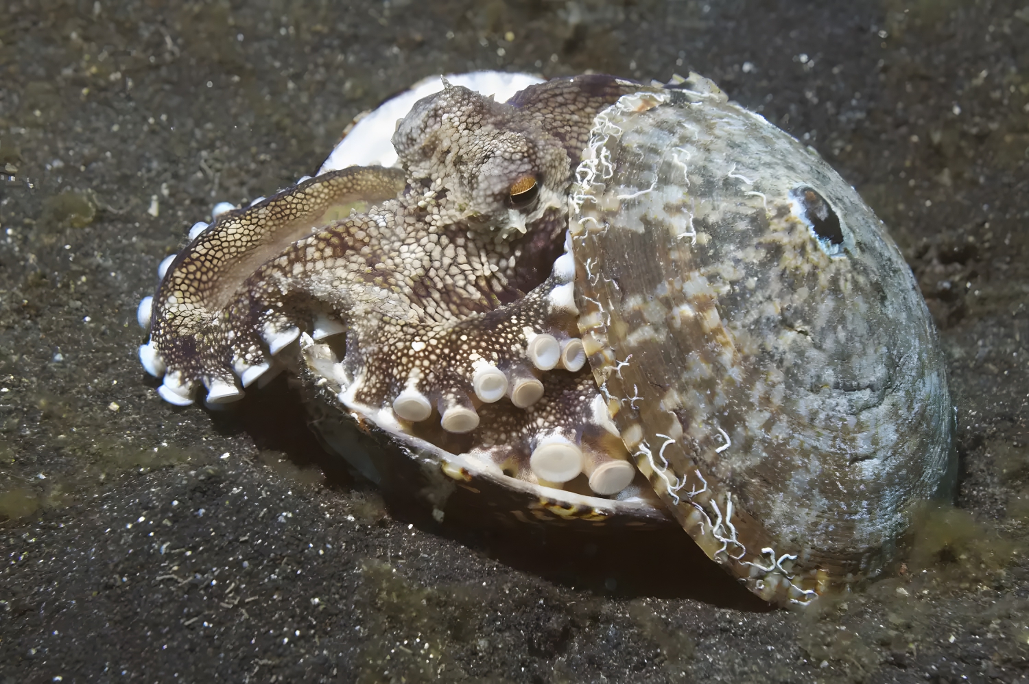 The octopus has been heralded as the most intelligent invertebrate on the planet, and its use of tools is often improvised. Some octopuses have been observed carrying two halves of a shell. When threatened by predators, they close the shells over themselves to hide, building a sort of protective armor. Furthermore, the blanket octopus has been known to tear off tentacles from jellyfish and wield them as weapons when attacked.
