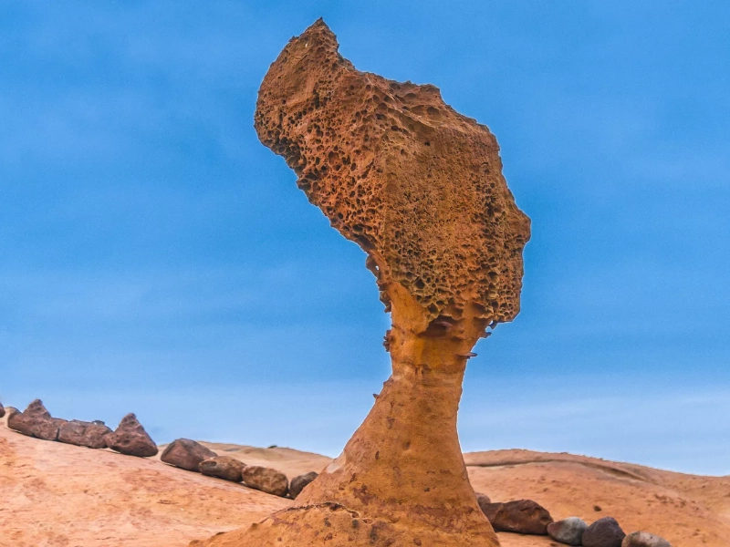 Nestled inside the vast 24-acre Yehliu Geopark, the Queen’s Head is only one of several intriguing rock formations scattered over the area. Still, it is the unquestionably headline attraction, bringing two and a half million tourists a year. This popularity is evidence of both its remarkable look and the unusual geological processes over thousands of years that have molded it.