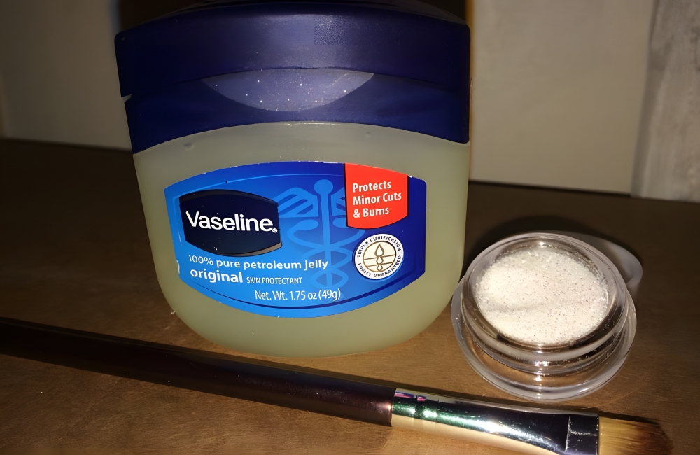 Vaseline isn’t just for moisturizing; it’s also a fantastic, mild adhesive for your decorative cosmetics. Want to keep those glittery eyeshadows, shimmery highlights, or even tiny rhinestones in place?