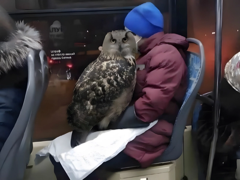Bringing your owl on a bus is definitely not what you expect. This enormous owl serves as a stark reminder of why these nocturnal birds are predators—it is not a shrinking violet. Particularly great-horned owls are capable of reaching enormous sizes.