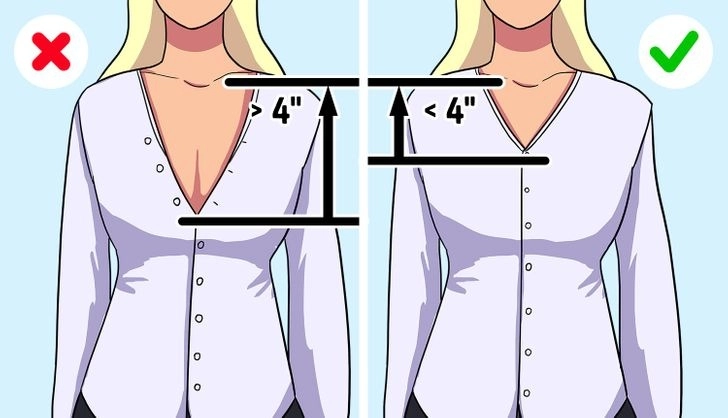 7. Der Ausschnitt Ihres Bürohemdes sollte nicht weiter als 10 cm über Ihr Schlüsselbein hinausragen.