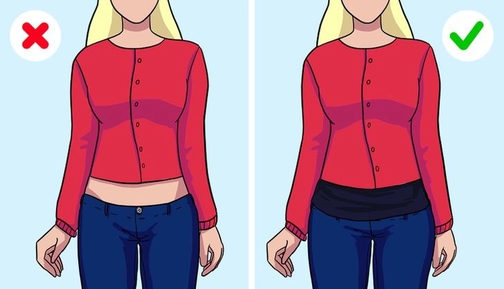 9. Ihre Strickjacke und Hose sollten nichts von Ihrer entblößten Haut zeigen. Bei Bedarf einen Aufsatz aufsetzen.