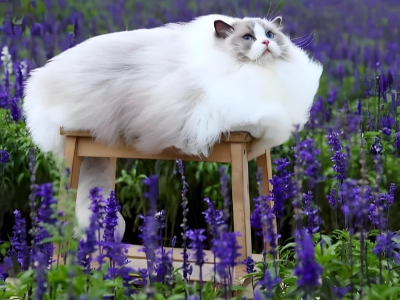 It is quite amazing how committed the owners of this cat are to catching the magnificence of their cherished friend. Organising a photoshoot in a lavender field is not only any average pet picture chance but also evidence of their awareness of the royal position of their cat. The cat’s perfect fur and generous dimensions help to project a picture of actual feline aristocracy. Her rather soft body accentuates her great presence and suggests a life of luxury in which every wish is satisfied without enquiry. Her royal highness, who obviously dominates her territory with a velvet paw and an expectation of limitless treats, finds the ideal backdrop from the purple blossoms. Her attitude, between mild contempt and satisfaction, really conveys the core of feline grandeur. Her pleas for second helpings are never denied, as with any actual king; after all, what type of subject would dare reject their queen?