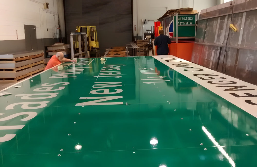 Some road signs are massive, stretching dozens of feet in length and width. Far from being ordered on Amazon, entire manufacturing plants, many of which hire prisoners as their labor force, are hired to produce these road signs for federal and state governments.
