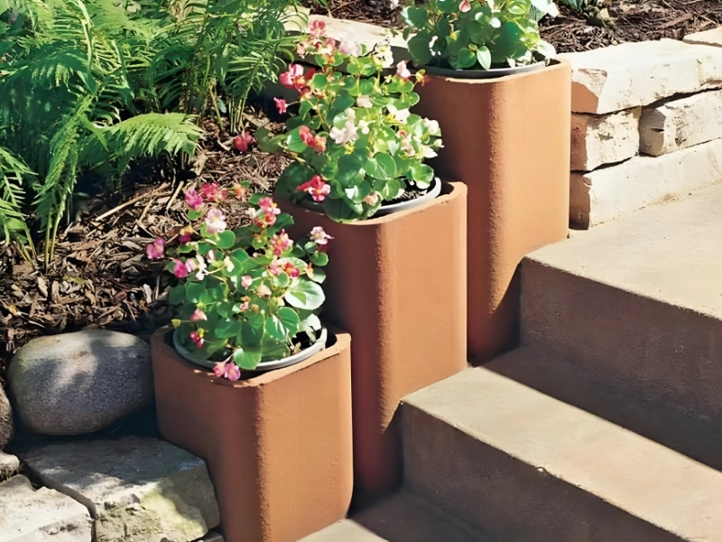 One option for creating your own terracotta planter is to use a chimney flue. You will need to buy three-foot clay flue liner lengths from a brick source, which should cost about $15 each. With a circular saw fitted with a cutting wheel, cut the chimney flues to various heights.