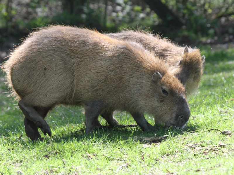 Using state-of- the-art bioacoustics, ground-breaking studies have shown that capybaras use a communication system significantly more advanced than any other known in rodents. From subsonic rumbles to ultrasonic calls, scientists have found more than thirty different vocalisations that each have particular social purposes. Like humans building sentences from words, these vocalisations can be arranged in many ways to produce sophisticated messages. Studies have revealed that they can provide thorough knowledge on food quality, amount, and location as well as different kinds of hazards and changes in societal level. Their vocal repertory consists in particular cries for several predators, which enables group members to react suitable to distinct hazards. Moreover, they incorporate individual-specific signals in specialised vocalisations used in courting and parent-offspring contacts. This finding shows that capybaras have cognitive skills hitherto linked only to primates and cetaceans, thereby leading to a whole reevaluation of rodent communication capacity.