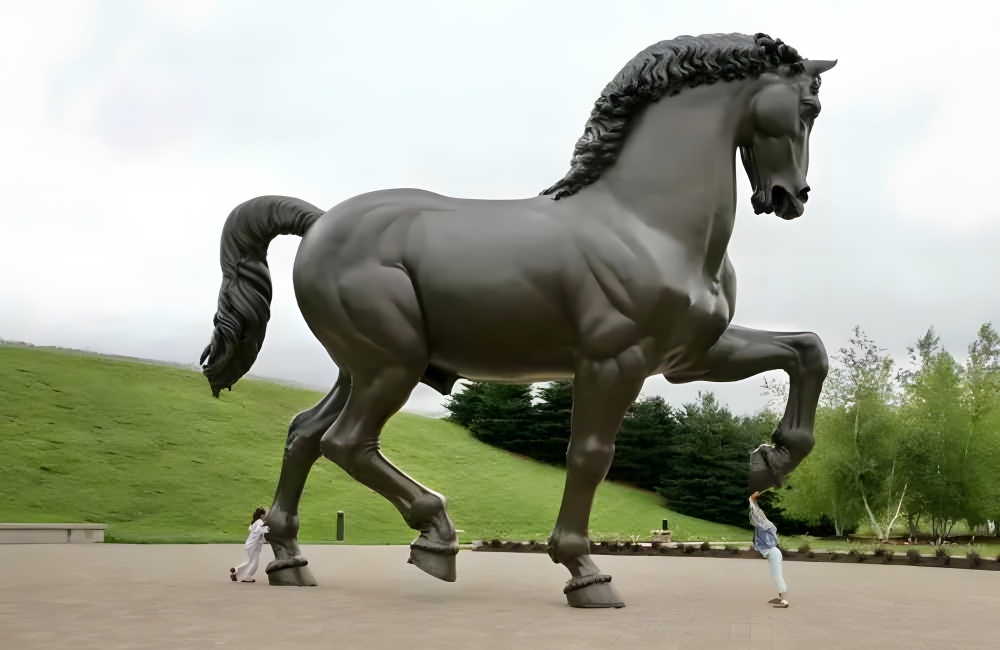 This gigantic bronze sculpture stands twenty-four feet in height, with visitors saying it feels even larger in real life. Akamu based her sculpture on sketches from Leonardo da Vinci, who wanted to create such a project but never got it off the ground.