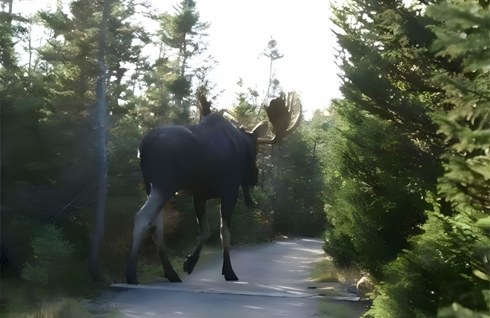 This gigantic monster moose was spotted in Canada or the Northern U.S., possibly Alaska. The best thing for the driver to do in this case was remain still and let this giant creature go about his business in peace.