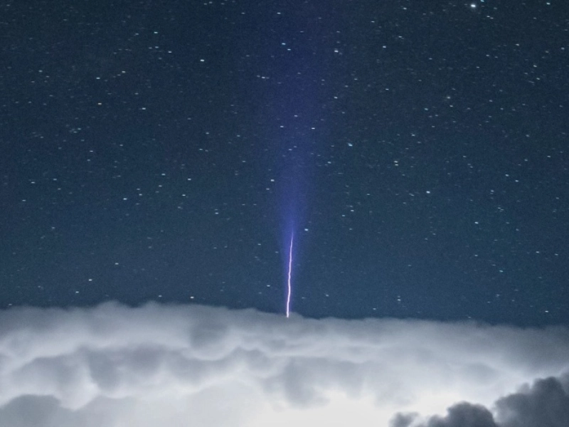 One of the most amazing kinds of blue lightning, blue jets differ from their more often occurring relatives. Rising from the summits of thunder clouds, these amazing events reach stratosphere heights of up to 50 km. Blue jets span far above the troposphere, the lowest layer of Earth’s atmosphere where most weather occurs, unlike ordinary lightning, which usually passes between clouds or from clouds to the ground.