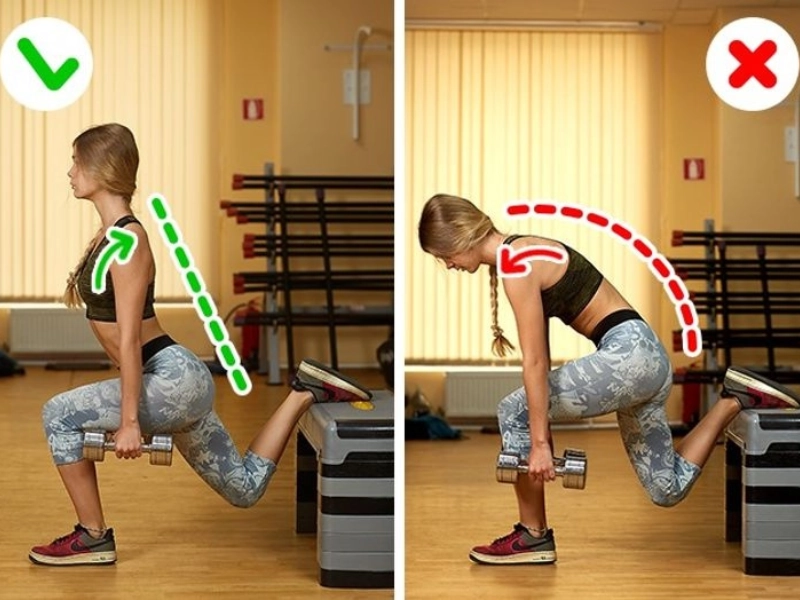 False: As a result of your shoulders leaning forward, your back is rounded as well. It’s not low enough to squat.Right: Reposition your shoulders, then stand up straight. Until your thighs are parallel to the ground, squat down.