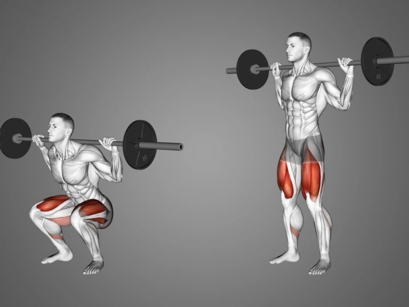 False: You should circle your back, place the barbell on your neck, and shift the weight to your toes if your knees extend past your toes. You risk falling and suffering serious neck injuries.Right: Ensure that the middle of your feet are in line with the weight of the barbell. Do not lift your heels off the ground and arch your back. Don’t squat too low; keep your thighs parallel to the ground.