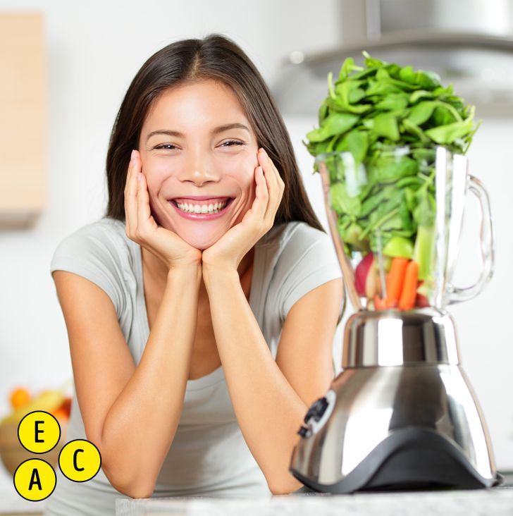 Green leafy vegetables such as spinach and kale are full of vitamins that the skin loves, including vitamins A, C, and E. Vitamin A controls sebum production, vitamin C boosts collagen, and vitamin E protects from oxidative damage. Together, they help your skin remain moisturized, plump, wrinkle-free, and spot-free. Both spinach and kale are also anti-inflammatory, fighting flare-ups in your gut and therefore, your skin.