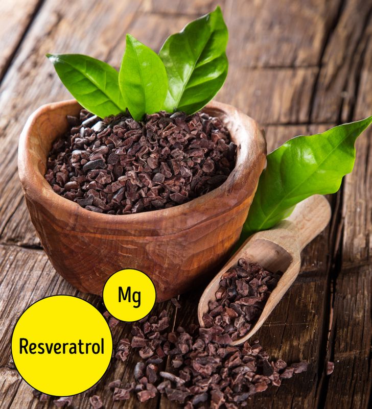 Cocoa (which is roasted cacao) and dark chocolate (which is made with cocoa) also have some resveratrol, but not nearly as much, so it’s best to consume raw cacao by adding it to smoothies or yogurt to get the most out of it.