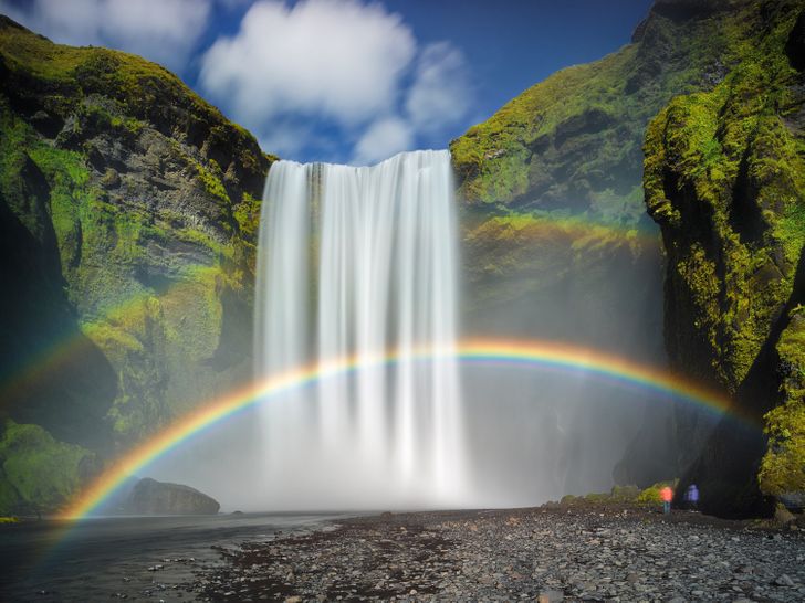 You can go to Skógafoss ― one of the biggest and most beautiful waterfalls in Iceland. Due to the large number of water sprays that Skógafoss produces, you can see a rainbow or even a double rainbow during warm sunny days.
