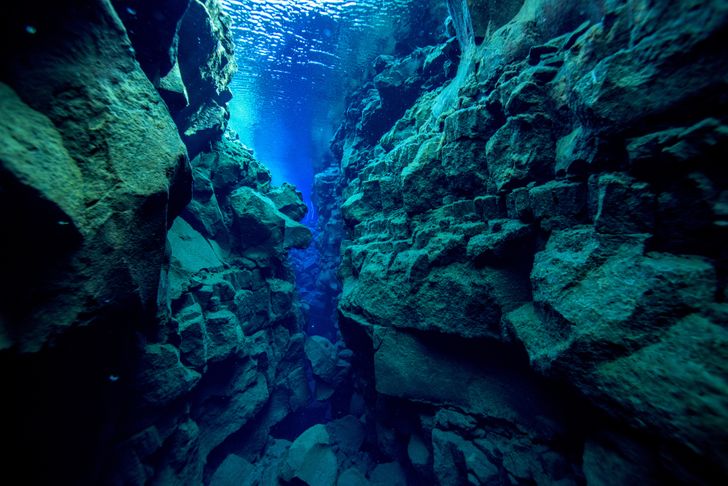 Silfra is a narrow crack between the North American and Eurasian continents. It is situated in Thingvellir National Park, and the waters here are crystal clear. You can actually drink right from the crack.