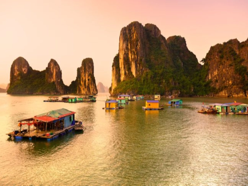 In der Halong-Bucht liegt Cua Van, ein malerisches Fischerdorf. Hier gibt es eine der größten schwimmenden Fischergemeinden. Die Anreise dorthin ist nur mit dem Boot möglich. Da es in diesem Dorf nur Fischer gibt, besteht immer eine gute Chance, dass sie von der Großzügigkeit des Südchinesischen Meeres profitieren. Jeder wohnt in hübschen Häusern auf Flößen, zwischen denen man sogar eine Schule entdecken kann.
