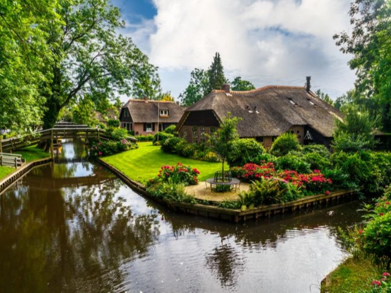 Giethoorn, auch bekannt als „Das niederländische Venedig“, ist eine der prächtigsten und lebendigsten Gemeinden der Niederlande. Die Gemeinde liegt an Wasserkanälen, die sich über eine Strecke von mehr als 7,2 Meilen erstrecken, was ihr ihren zweiten Namen eingebracht hat. Das Dorf ist fast ein Jahrhundert alt. Für den Transport auf dem Wasser nutzen die Einheimischen vor allem Ruder- und Elektroboote sowie Fahrräder, um die Holzbrücken zu überqueren, die die auf mehr als 50 kleinen Inseln verstreuten Häuser miteinander verbinden.
