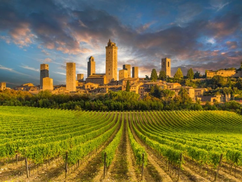Im dritten Jahrhundert v. Chr. gründeten die Etrusker San Gimignano. Ursprünglich war es ein recht kleines Dorf, aber im 10. Jahrhundert n. Chr. hatte es sich zu einer Stadt entwickelt. Die Turmresidenzen sind das markanteste Merkmal dieser Stadt. Leider gibt es derzeit nur noch 14 dieser Häuser. Am Start waren es 72. San Gimignano, das Zentrum ganz Italiens und insbesondere der Toskana, ist von der Atmosphäre des Mittelalters durchdrungen.