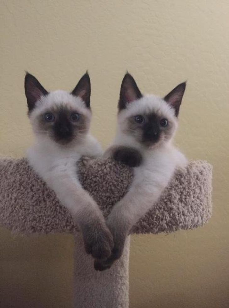 These Siamese kittens are sharing love.