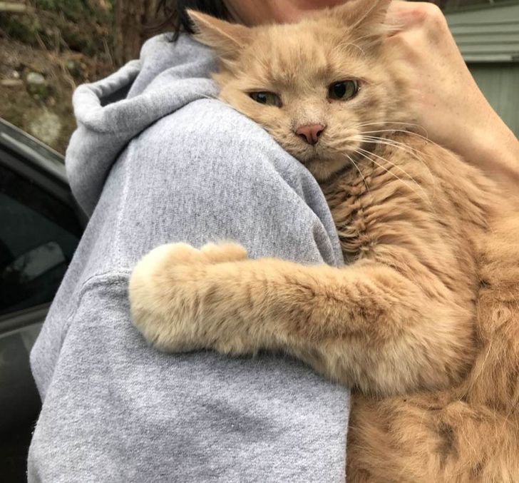 6. “This cat is hugging his mom after being lost for 5 hours.”