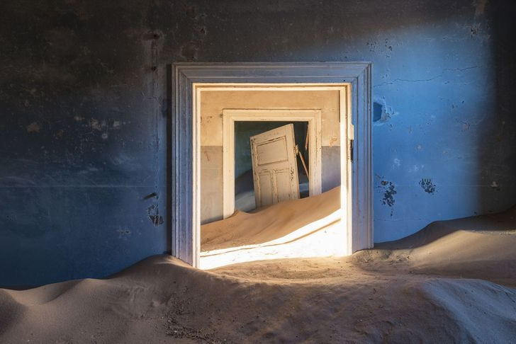 The 1950s saw the closure of a Namibian diamond mine located near Kolmanskop. What was left was reclaimed by the desert.