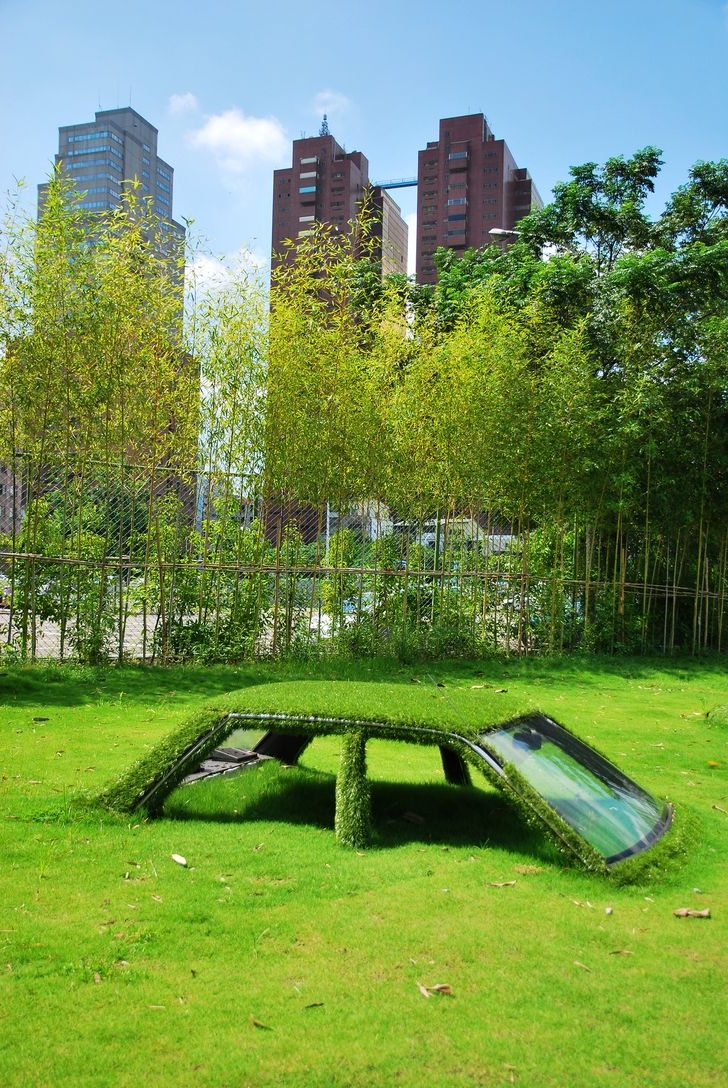 Grass has unmistakably claimed this automobile in Taiwan, China.