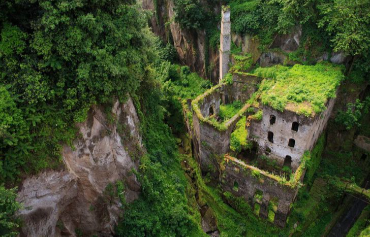 The ancient trees have taken over what was once a mill in the heart of Sorrento, Italy.