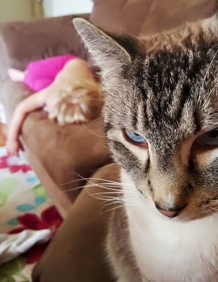 “My daughter fell asleep in the cat’s favorite spot. Looks like she’s already plotting her ultimate demise.”