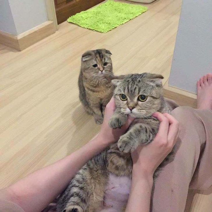Waiting for your turn to cuddle.