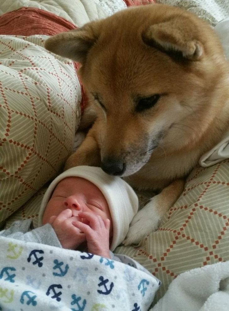 16. Our dog is completely addicted to our newborn.