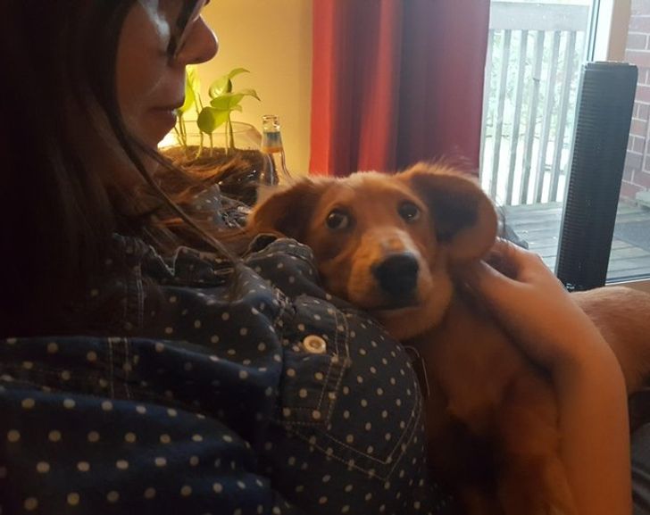22. My dog is welcoming her new baby sister home. Just look at those eyes!