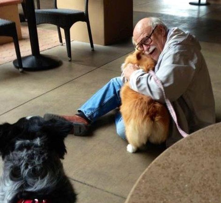 4. This is my puppy bringing joy to an elderly man who she met this morning.