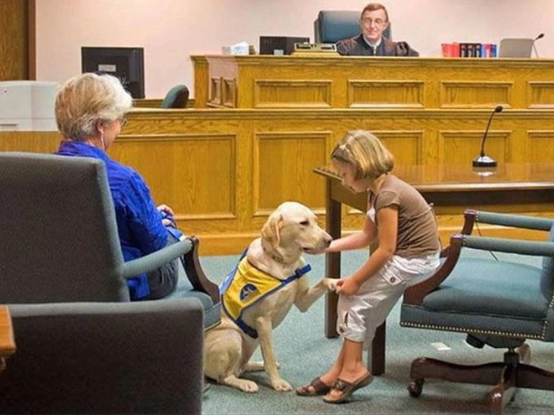 Children can use this dog to help them cope with the anxiety of going to court. She supports people in developing the courage to be open and honest about their past experiences.