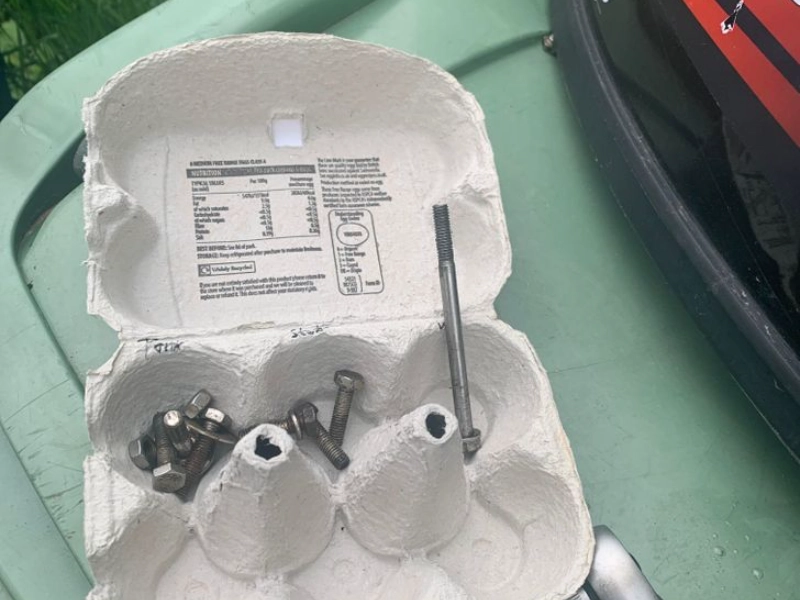 The idea behind keeping engine components in egg boxes is really simple. An egg carton offers the ideal fit for the orderly storage of minor engine components since its distinct sections are made to securely retain eggs. Every compartment can be assigned particular parts, reflecting their original engine location. This approach preserves parts’ order of removal, which is absolutely vital for precise reassembly, in addition to keeping them distinct and immediately recognizable.