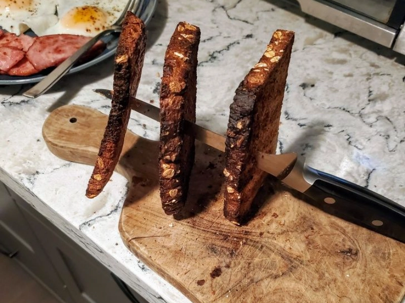 Beyond its first use for bagels, the creative culinary tip of using a knife to cool down crisp toast and avoid sogginess spans much ground. Foodies and home cooks alike have come to know this straightforward but powerful technique as a fix for a typical breakfast conundrum: how to keep toast’s ideal texture while letting it cool to an edible temperature? Simple thermodynamics and heat transport provide the foundation for this method. When toast comes hot from the toaster, the residual heat keeps the bread cooking and could cause the intended crispy quality to disappear. Furthermore, the liquid in the bread can migrate when the hot toast cools, therefore rendering the crisp surface soggy. Using a knife, usually a butter knife or table knife, as a heat sink helps one speed the cooling process while maintaining the toast’s crispness. The technique is straightforward: straight away after toasting, press the flat side of a clean, room-temperature knife against the toast’s surface. Being a good heat conductor, the knife’s metal rapidly absorbs more heat from the surface of the bread. In addition to accelerating toast cooling, this fast heat transmission helps preserve crisp texture by keeping moisture from softening the surface. Since a knife with a significant blade offers more surface area for heat absorption, it is advised for best outcomes to use one. Because of their endurance and heat conductivity, stainless steel knives are very successful. By rotating the toast and repeating the process, one may use the technique on both sides to guarantee uniform cooling and texture retention. Those who like to top their toast will find this approach particularly helpful since it lets the bread cool enough without turning soggy, therefore providing the ideal basis for spreads, avocado, eggs, or any other preferred topping. This trick’s adaptability reaches to many kinds of bread and toasted products. Although bagels started it, it works just as nicely with traditional sliced bread, handcrafted loaves, English muffins, even waffles or pancakes that have been toasted for added crispness. When one is making several slices of toast or a big breakfast spread, this method is very helpful since it lets every piece retain its best texture until ready to be served. Moreover, this trick fits the growing curiosity in food science and the use of scientific ideas in regular cooking. It shows how knowing the physical characteristics of food and equipment could result in basic but noticeable enhancements in cooking results. Using this method can help home chefs improve their breakfast experience so that every slice of toast tastes as good as expected: crisp, flavorful, and at the ideal temperature for pleasure.