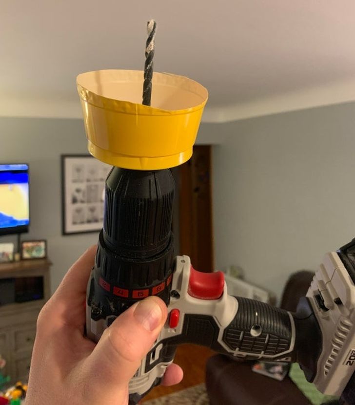 15. “Drilling a hole in the ceiling? This saves you from having to clean up dust!”
