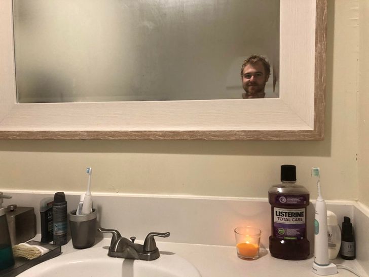 13. “Light a candle before you shower to keep a pocket of the mirror un-fogged for hair combing, etc.”