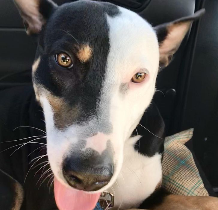 7. A lab that’s a total fan of Deadpool.