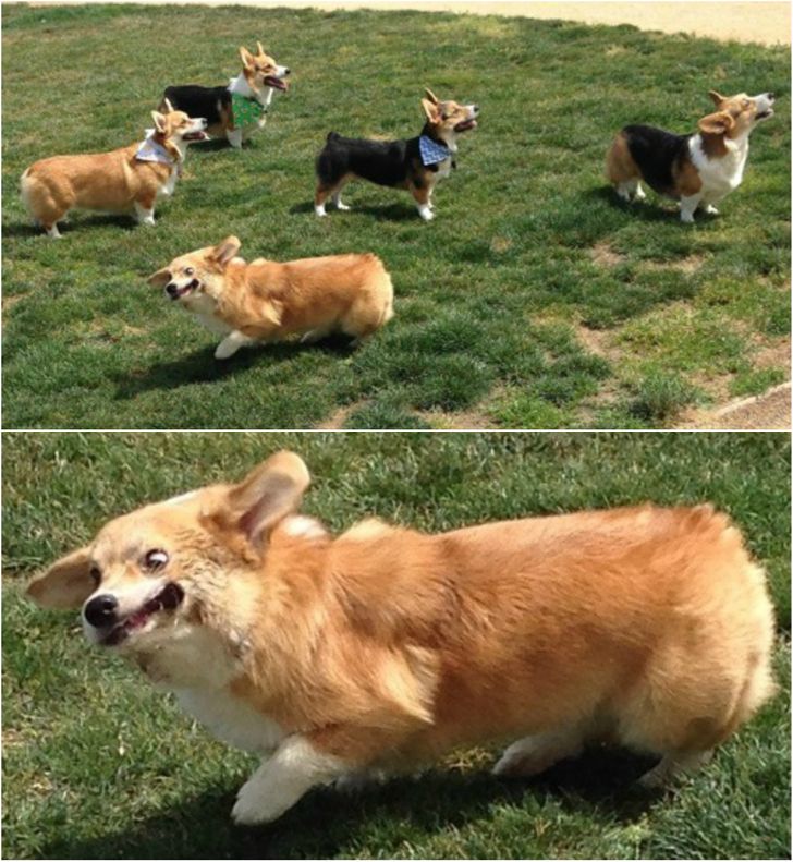 Went to a corgi meet up this weekend. The other corgis are all looking at the ball. My dog, on the other hand, is derping really hard.
