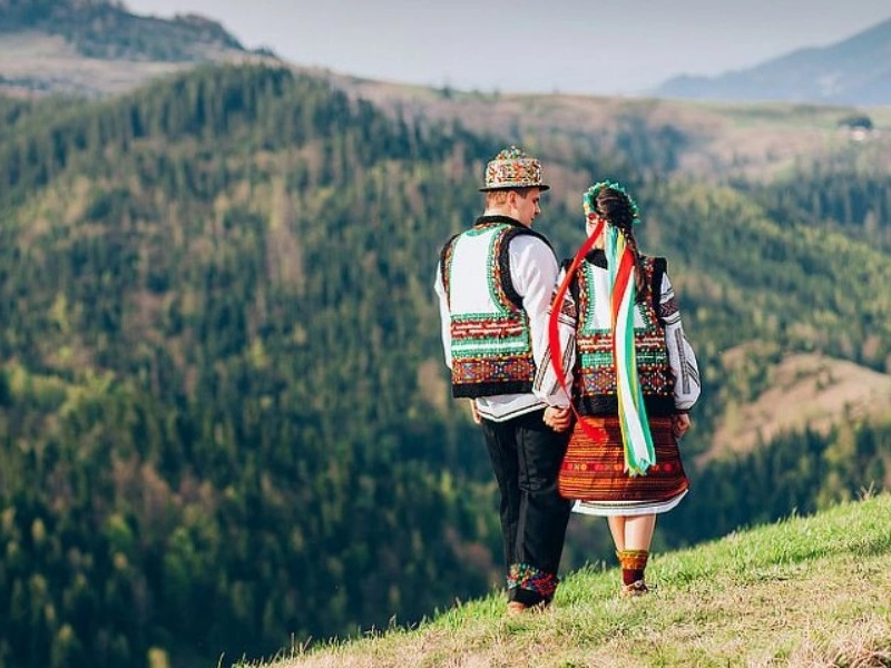 Compared to other parts of the nation, the Hutsul ethnic group, which has lived in the Ukrainian Carpathians for many years, has more traditional wedding attire. Hutsul attire is characterised by a profusion of vibrant ornamental features and detailed embroidery. Brides always accessorise their heads with a scarf or wreath, and they frequently don broad blouses and embellished skirts. Hutsul weddings are lively celebrations that include dancing and entertainment.