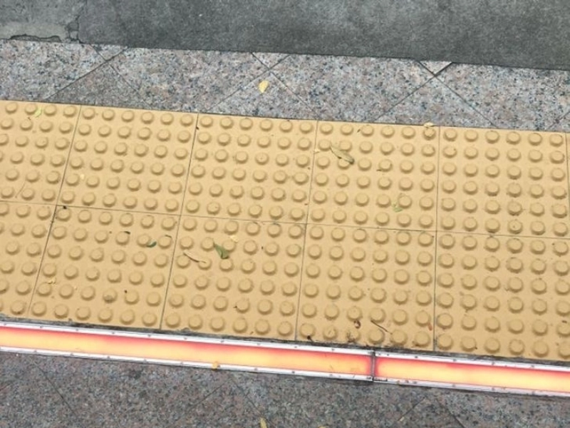 15. The ground of this sidewalk has traffic lights installed for phone users.