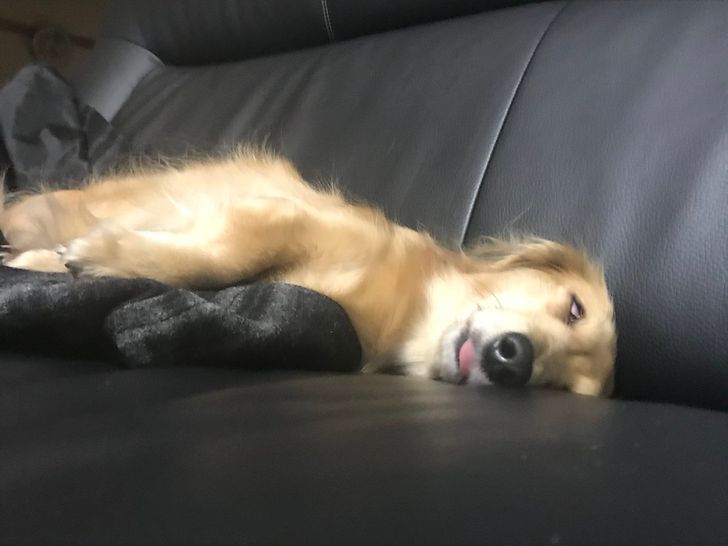 “So I walked into the great room and found my dog like this. This isn’t staged… she did this herself. Clearly she’s learned from the master… me.”