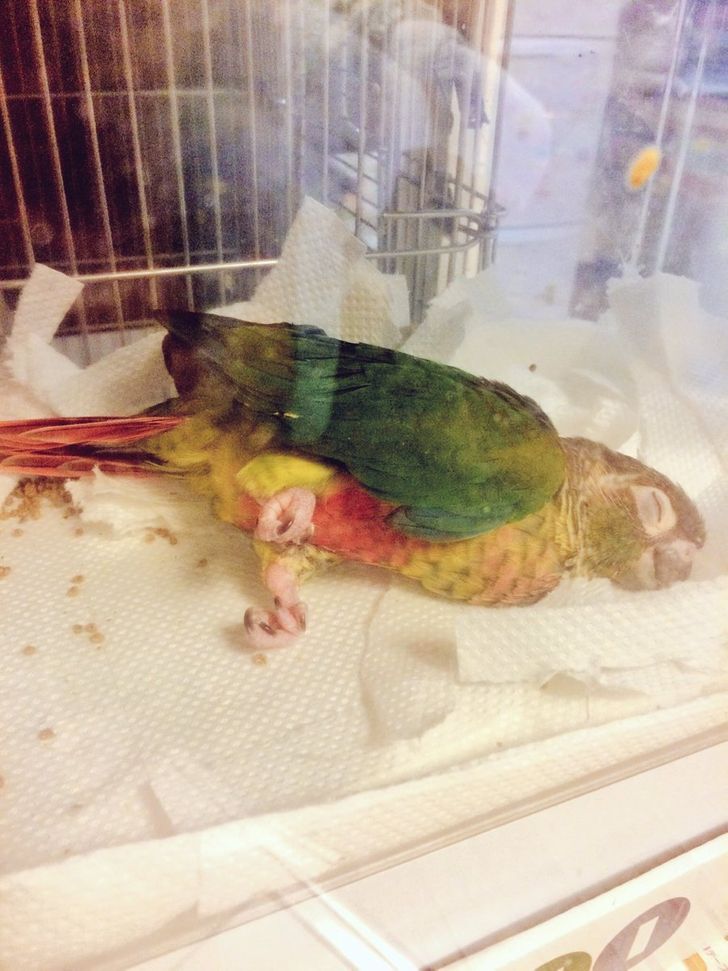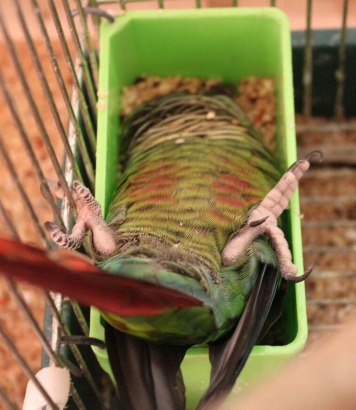 Parrots love sleeping too.