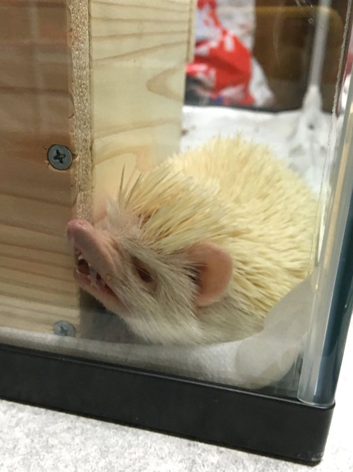 The hedgehog is not angry. It sleeps like this.