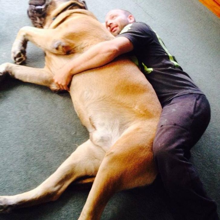 This dog can be hugged only in a lying position.