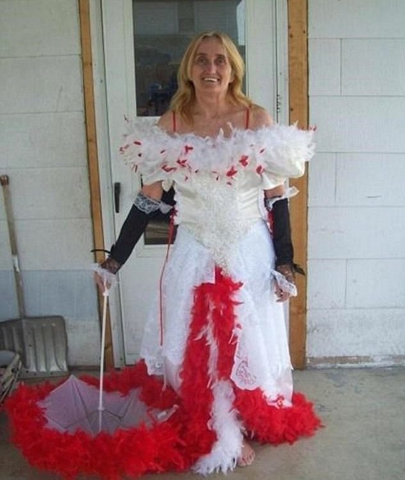 When it comes to wedding dresses, creativity knows no bounds, and this bride’s choice is a true testament to that. Her gown, completely adorned with layers of feathers, is anything but ordinary. While the design might leave some people scratching their heads, there’s no denying that it’s a bold and unique statement. The dress seems to draw inspiration from nature, with its feathery texture evoking the image of a bird in full plumage. Whether she’s a bird enthusiast or simply wanted to embrace an avant-garde aesthetic, this bride clearly followed her heart when choosing her wedding attire.